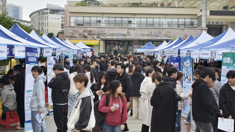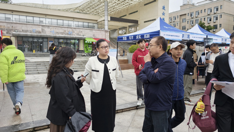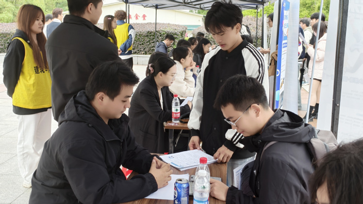 新闻网讯(通讯员杨帆)10月30日,虽有细雨洒落,武汉职业技术大学光谷校区凌云广场却依旧人气满满。中建三局第三建设工程有限责任公司、中天建设集团有限公司第六建设公司、上海风语筑文化科技股份有限公司等40余家央企、上市公司及校友企业如约而至,与建筑工程学院2026届毕业生开启双向奔赴的求职与招聘之旅。