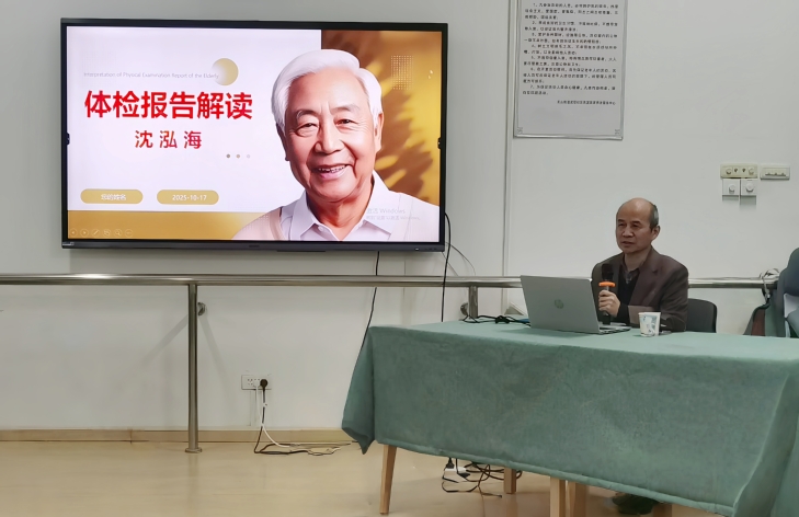 讲座中,沈泓海结合丰富临床经验,聚焦老同志关心的健康话题,教大家科学解读体检报告。他用通俗语言拆解血常规、尿常规,以及血糖、血脂、肝肾功能等生化指标,详细说明关键数据的含义,针对指标异常情况给出应对办法,既引导老同志正确看待体检结果、避免盲目恐慌,也提醒大家留意潜在健康风险。