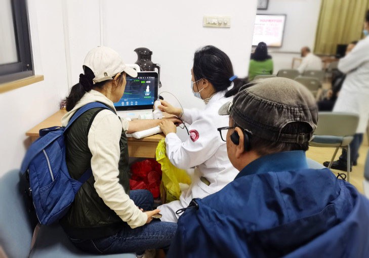讲座结束后,义诊服务随即展开。校医院医务人员借助专业仪器,为有需求的老同志免费做骨密度检测,当场解读结果并给出初步健康指导。沈泓海和其他医护人员还在现场设了咨询台,耐心倾听老同志的健康疑问,针对每个人的情况给出个性化建议。