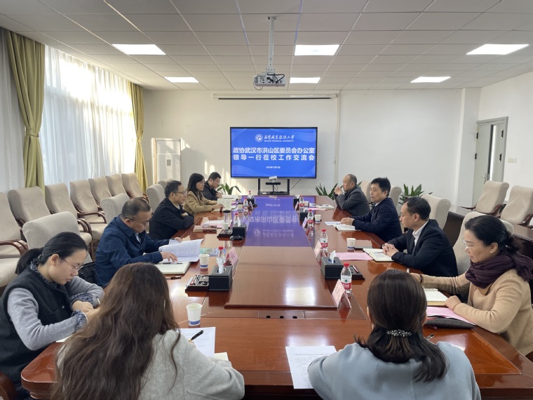 胡象斌代表学校对洪山区政协领导一行来校调研指导,以及洪山区长期以来给予学校建设发展的支持表示衷心感谢。他介绍了学校近年来在人才培养、学科建设、科研创新等方面取得的发展成绩,重点阐述了学校服务区域经济发展的具体成效;同时汇报了学校党委、行政坚决贯彻落实党的统战工作方针政策,积极支持政协委员、民主党派成员、党外知识分子立足岗位参政议政、实现“双岗建功” 的系列举措,并对万军梅教授在履职过程中展现的责任担当与工作成效给予赞许。