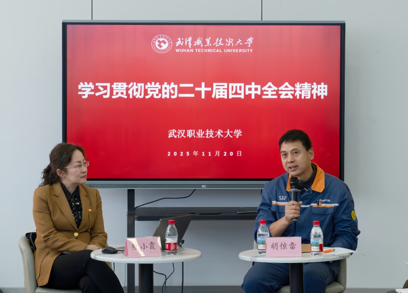 新闻网讯(党委宣传部罗露)11月20日下午,省委讲师团深入武汉职业技术大学宣讲党的二十届四中全会精神,带来一场兼具理论高度与实践温度的思想盛宴。全国劳模、武钢硅钢部热处理技能大师胡惊雷,全国抗击新冠肺炎疫情先进个人、武汉儿童医院院长陆小霞两位一线专家,结合自身深耕行业的奋斗历程,用鲜活故事解读全会精神,让“十五五”规划蓝图在师生心中落地生根。省委讲师团主任姚亭华、副主任孔奇志,省委高校工委孙延朝,学校党委书记鄢烈洲、党委副书记胡象斌等领导出席,各分党委负责人、师生代表及青年马克思主义者培养工程学员共同聆听宣讲。