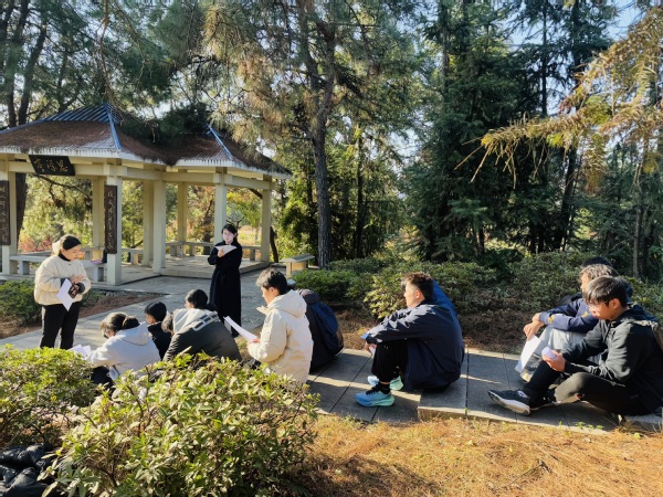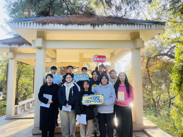 “是书让我走出了那段低谷。”现场互动环节,电信24302班刘园春分享了阅读带来的温暖陪伴,引发在场学子共鸣,也让大家意识到 —— 理解情绪本质,是走出心理困境的关键一步。活动尾声,全体参与者齐诵“书香润心,韧性成长”,将这份对心理成长的信念,定格在山风与共读的温情氛围中。