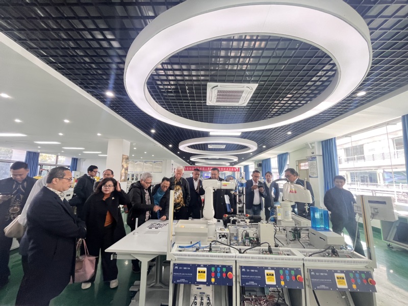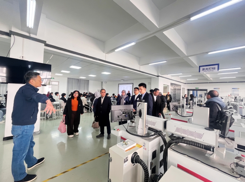 座谈结束后,代表团一行先后参观了光电与信息工程学院集成电路芯火基地、激光加工中心、5G产教融合基地,以及智能制造学院数控实训中心、3D打印实训中心、工业机器人实训中心。在参观过程中,代表团成员了解了武汉职业技术大学将产业标准融入教学实训、以产学研融合培育技术技能人才的具体实践,对学校先进的办学条件、深度的产教融合模式给予高度赞誉,认为相关经验对印尼高校人才培养具有重要借鉴意义。