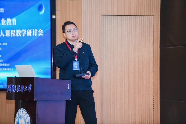 常州机电职业技术学院电气工程学院院长蒋庆斌围绕“高职智能机器人专业建设路径”,提出“以产业需求定方向、以技术升级改课程、以项目实践强能力”的建设思路。