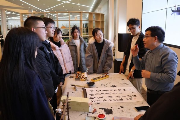武汉职业大学书法协会指导教师娄修明、艺术设计学院专任教师邹先祥到场观赛指导,并担任决赛评委。娄修明作现场点评并勉励选手:“书法之道,亦是做人之道。执笔当怀敬畏,运笔应守方正,方能写出风骨,活出坦荡。”在场师生共同品读作品,深化了对“以字喻廉、以文化人”的理解。