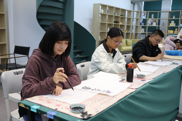 2025年武职大“腾飞杯·清风奖”书法比赛自11月中旬启动以来,共累计收到硬笔书法作品279件、软笔作品50件。经专业评审,45名选手脱颖而出入围决赛。28日,决赛选手齐聚学校众创空间,分软笔、硬笔两组进行现场命题创作。