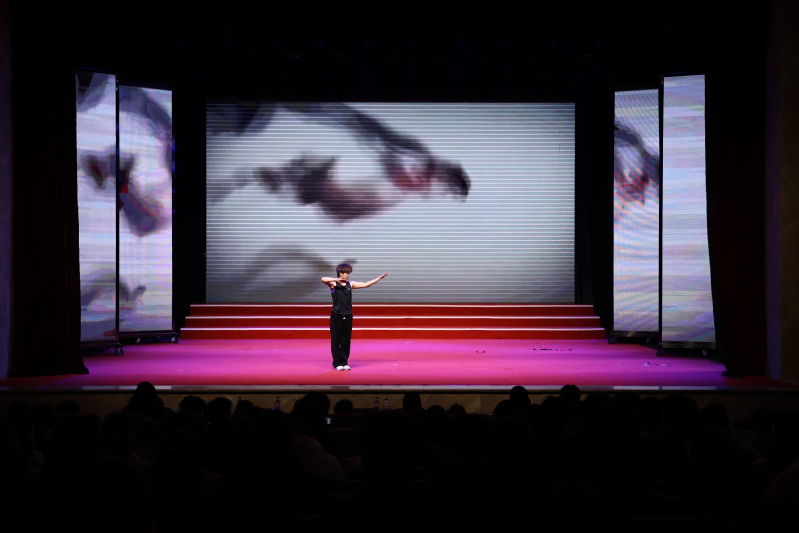 比赛中涌现出多组具有思想性、艺术性与创造性的优秀作品。音乐剧《钢的琴》选段以戏剧化演绎传递时代温情;南拳《天人合一》刚柔并济,以武术之韵展现当代青年的文化自信;舞蹈《LALA LAND—爱乐之城》凭借其活泼的节奏与情感张力,彰显了学子们的编排创意与舞台表现力。往届冠军李昱樊作为特邀嘉宾带来原创新作《成为》,以青春创作呼应了“以艺育人”的持续影响力。