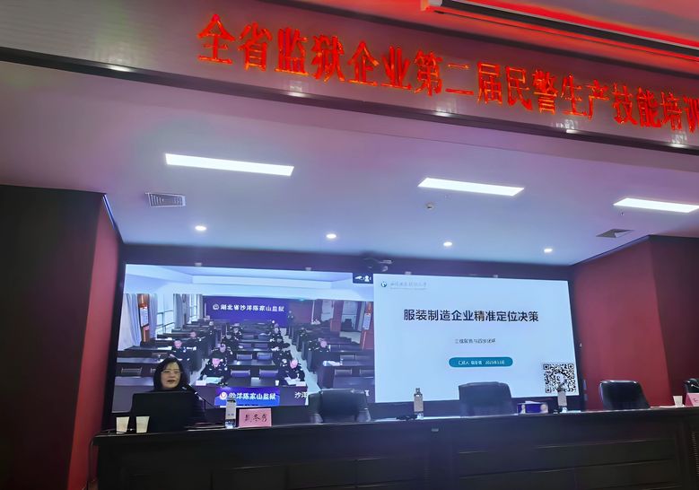 技能比武落幕后,全国行业职业教育指导委员会委员,教育部职业教育基本专家库成员,中国纺织服装教育学会理事,武汉职业技术大学戴冬秀教授面向全省28所监狱近200名现场主管经营领导干部,及线上各分会场近 300名生产经营主管干部,开展《服装制造企业精准定位决策》专题讲座。