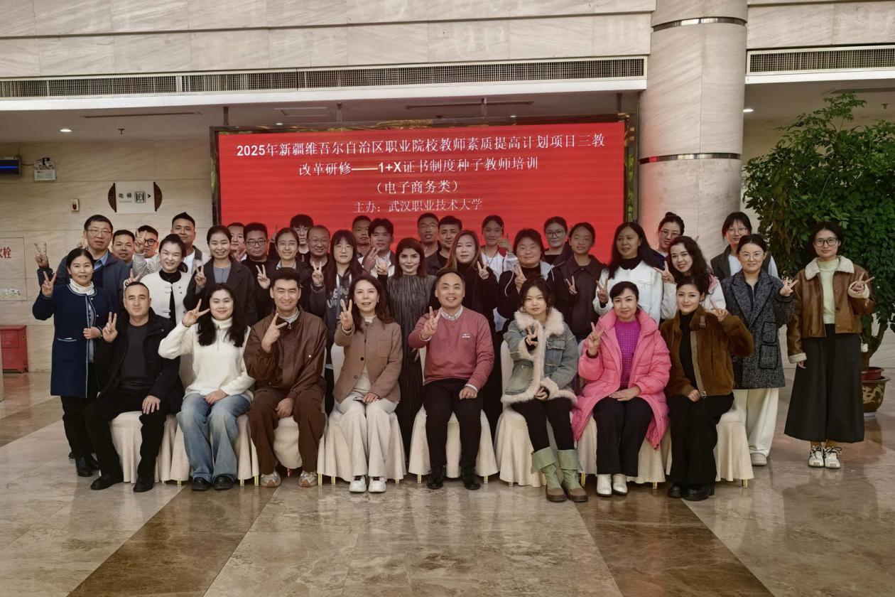 新闻网讯(通讯员罗葳 摄影杨宁)12月20日,由武汉职业技术大学承办的“2025年新疆维吾尔自治区职业院校教师素质提高计划项目——1+X证书制度种子教师培训(电子商务类)”圆满落幕。来自新疆维吾尔自治区31所职业院校的33名骨干教师参加为期四周的集中研修,在理论素养、专业技能与产业实践等方面得到了系统化提升。
