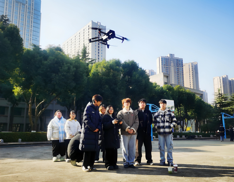 实操环节成为全场焦点。师生分组上阵,在企业导师指导下,从最初的手忙脚乱到逐渐掌握起飞、降落的平衡与方向控制,大家轮流体验操控乐趣,在亲身实践中解锁“空中视角”。不少首次接触无人机的艺术设计学子表示,这种全新的观察方式,让自己对空间形态有了更深刻的理解。