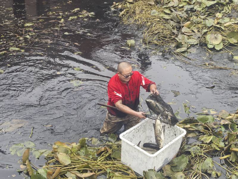 翌日清晨,捕捞小分队上线!大家分工明确、动作娴熟,捞鱼、分拣、称重、转运一条龙操作,白鲢、草鱼、鲫鱼等鲜鱼纷纷“上岸报到”,最终斩获800余斤“战果”。