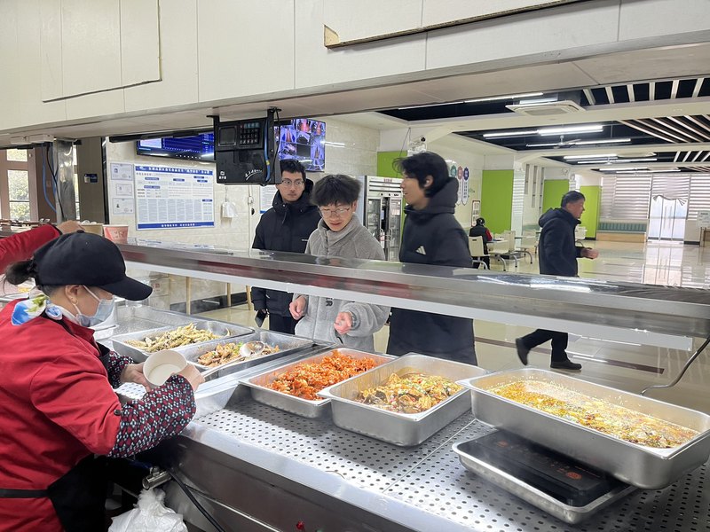 元旦中午,食堂赠鱼窗口前排起了长队,学生凭校园卡、教师凭教工卡有序等候。现场鱼香四溢,笑声不断,节日的快乐值直接拉满!