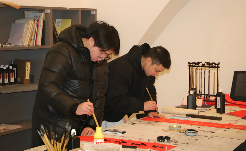 新闻网讯(大学生记者宋佳伟、李楠)1月6日下午,由武汉职业技术大学商学院主办、书法协会承办、关山客创新创业协会协办的“龙马挥春・翰墨迎新”主题书法活动在众创空间C06圆满举行。活动特邀学校书法协会指导教师娄修明、艺术设计学院教师邹先祥现场指导,众多师生书法爱好者齐聚一堂,以笔墨寄情,用春联传福,共赴一场传统文化与新春祝福交织的文化雅集。