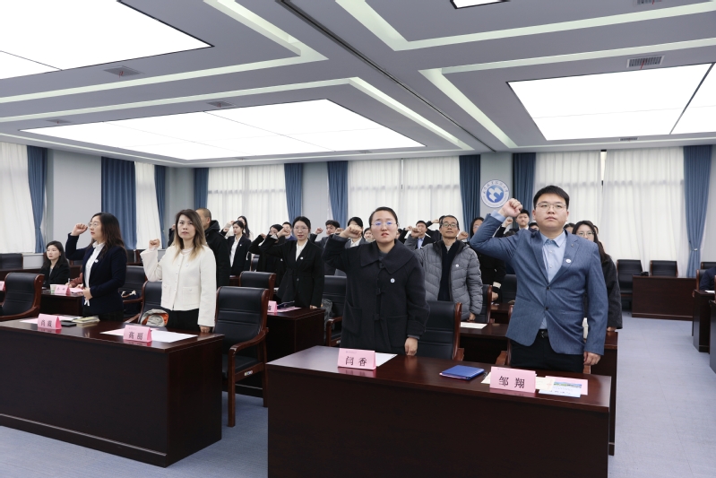 随后,校领导为新进教职工逐一颁发入职证书。这份证书,既是身份的正式确认,更是育人责任的郑重托付,标志着新教职工正式融入学校教师队伍,开启职业发展新篇章。紧接着,在马克思主义学院副院长尹紫薇的带领下,全体新进教职工面向师德宣誓词庄严宣誓。铿锵誓言回荡在会场,彰显了新教职工恪守师德规范、践行育人初心的坚定信念与责任担当。