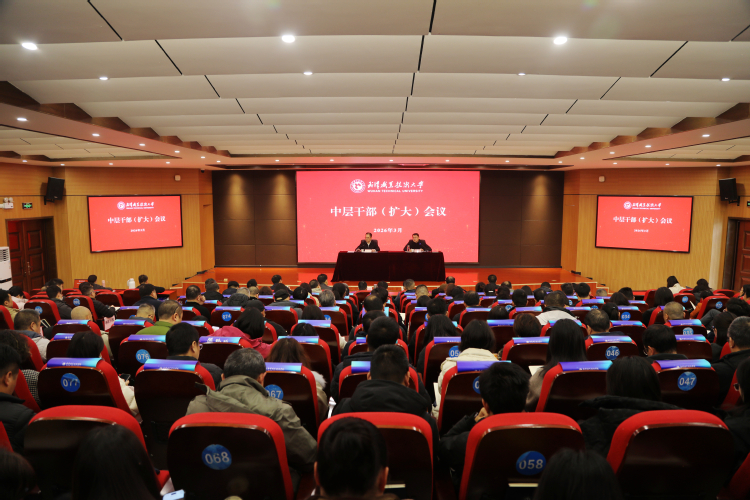 新闻网讯(通讯员 马瑞阳)3月4日下午,学校2026年春季学期第一次中层干部(扩大)会议在凌峰楼C11报告厅召开。会议传达学习上级重要会议及文件精神,全面部署2026年学校重点工作,动员全体中层干部统一思想、凝聚共识、压实责任、狠抓落实,奋力推动学校事业高质量发展。