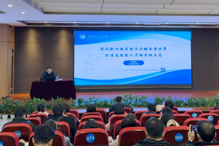 新闻网讯(通讯员 严芮 王艺璇)3月20日,武汉职业技术大学召开职业教育教学关键要素改革工作培训会,聚焦职教教学提质增效,部署核心改革任务,凝聚全校育人合力。校长何保华作政策解读暨改革方案部署报告,各教学机构负责人、骨干教师代表,教务处、社会职业与职业教育研究院、质量管理处等职能部门相关负责人参会。会议由副校长杨旭东主持。