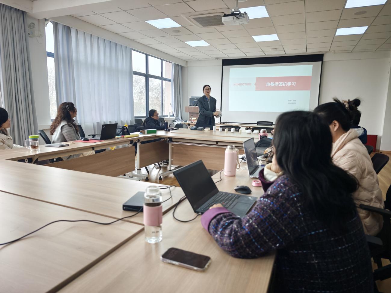 在两天的培训中,赵媛结合实操演示,详细讲解“精臣云打印”“臣小印”等软件的操作逻辑,同时分享自身职业成长经历,深入解读精臣“用户导向、以终为始”的核心价值观。“在校期间的专业课程为我打下了坚实的职业基础,如今能带着一线实战经验反哺母校,我觉得特别有意义。”她表示,后续将参与学院入校“通关考核”环节,助力学弟学妹们实现“入企即达标”的培养目标。