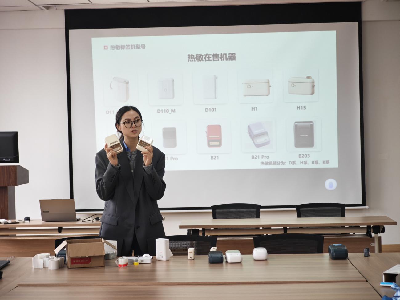 “回到母校,坐在曾经的教室里为老师们讲课,既紧张又亲切。”培训开场,赵媛感慨道。2013年从武汉职业技术大学电子商务专业毕业的她,从企业一线客服岗位起步,凭借扎实的业务能力和对企业的深度理解,一步步成长为公司培训主管。本次她带来的培训内容,涵盖精臣公司企业文化、智能打印软硬件生态、标准化客服流程等核心模块,均由企业真实业务场景提炼而来,兼具实用性与实战性。