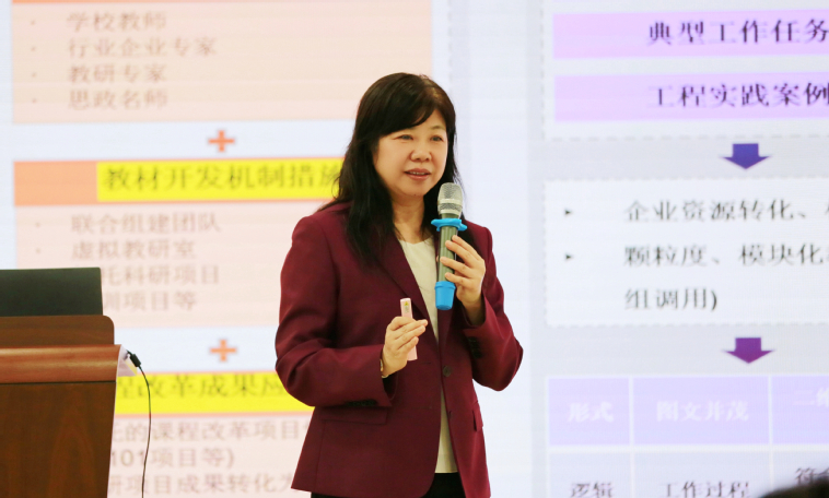 赵欣以《第二期“双高建设”视角下的建设任务思考与探索》为题,从政策背景、关键任务、标志性成果、培育与建设四个维度,系统解读第二期“双高计划”的内涵特征、建设思路与实施方式。她提出,“双高建设计划”一期看底子、二期看路子,一期比硬件、二期比贡献,一期重建设、二期重改革,“新双高”建设是对第一期建设的深化拓展与有力推进。