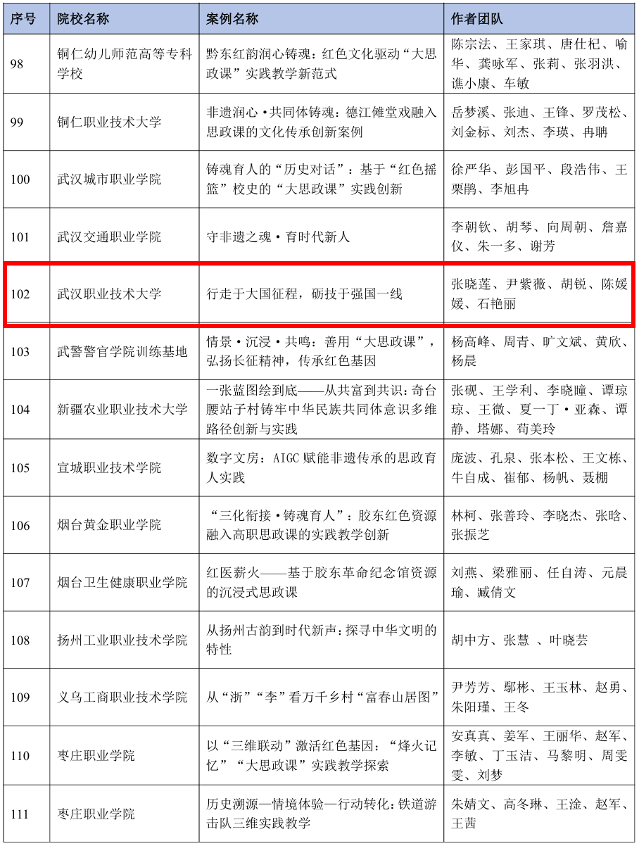 武汉职业技术大学一案例入选全国高校“大思政课”实践教学典型案例