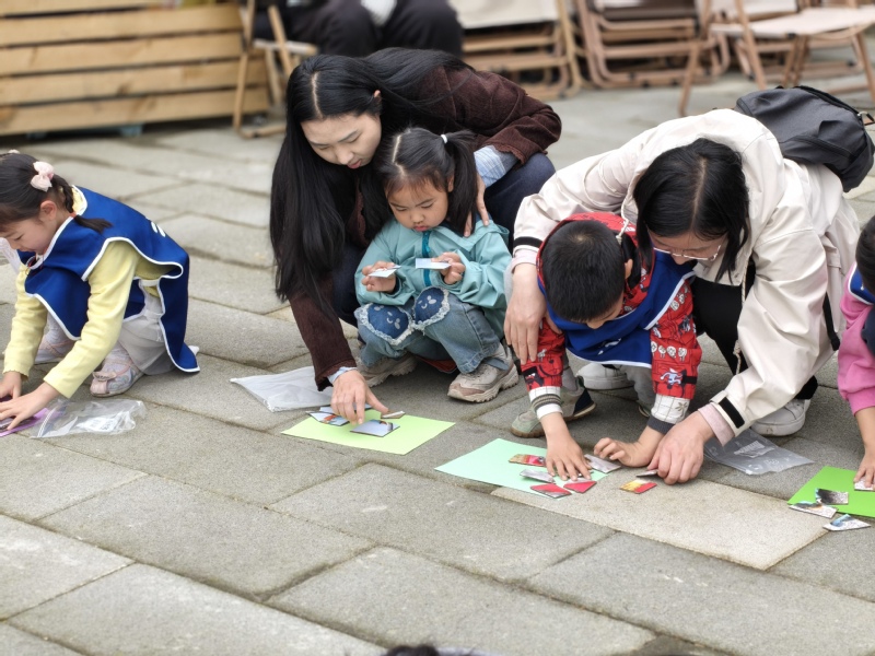 科普环节结束后,“小鸟对对碰”互动游戏有序开展。团队成员分工明确,认真做好道具分发、规则讲解与秩序维护,让市民在轻松氛围中认识武汉本土鸟类,实践团队成员们也在组织服务中提升了沟通协调能力。