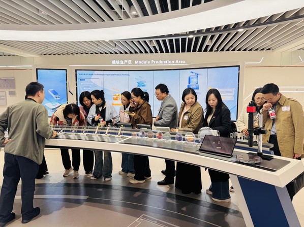 学院一行先后参观光迅科技企业展厅、智能化生产线、光器件封装与测试车间,详细了解企业发展历程、全球产业布局、核心技术产品及智能制造流程,近距离感受光电器件、光通信领域前沿技术与现代化制造水平,明确行业岗位标准与人才能力要求。