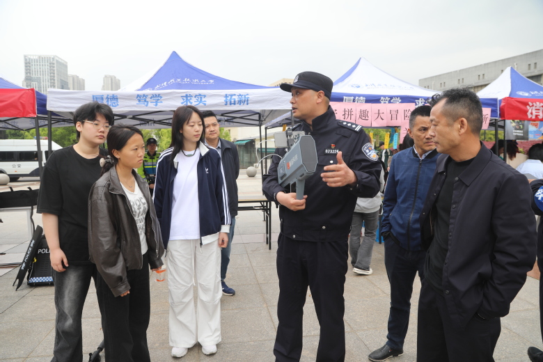 与主会场活动同步,凌云广场户外体验式感知教育活动火热开展。现场设置消防、禁毒、交通、急救、反暴恐五大主题宣传区,以及“国安拼图大冒险”互动游戏区。其中,反暴恐宣传区首次亮相成为亮点,特警队员现场展示防暴叉、无人机侦测反制装备,演示应急处突战术,吸引众多师生驻足体验。活动借助讲解、展示、实操、互动等多元形式,让安全知识可感可学、入脑入心。