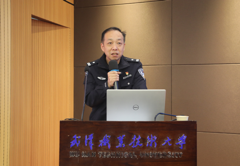 随后,安全大讲堂系列讲座开讲。公安战线专家、警官围绕三大主题开展专题辅导:武汉市政法专家纪警官在国家安全形势与政策专题中,深入分析当前国际国内安全形势,解读相关法律法规,引导师生树立正确国家安全观、增强政治敏锐性;武汉市公安局东湖新技术开发区分局朱警官结合实战经验,讲解暴恐事件识别、预防及自救互救技巧,提升师生应急处突能力;武汉市公安局反电信网络诈骗中心杨警官聚焦大学生高发诈骗类型,揭秘刷单返利、冒充客服、网络游戏虚假交易等诈骗套路,传授防范技巧,提醒大家“不轻信、不转账、不透露”,守护个人财产安全。三场讲座内容充实、案例鲜活、讲解生动,现场反响热烈,参与活动的师生表示深受教益。