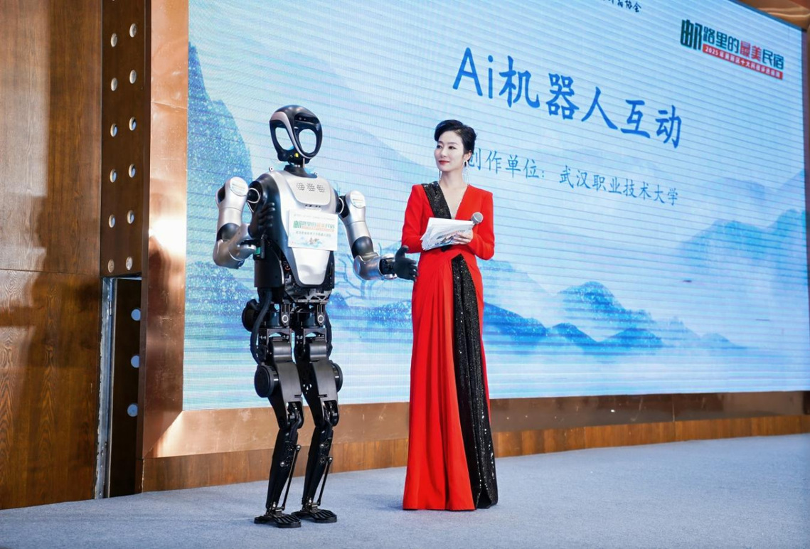 2025年4月,武汉“邮路里的最美民宿”活动现场,一台名为“小邮宝”的智能机器人格外引人注目。精准的引导服务、流畅的文旅推介和灵活的互动问答,这台机器人的交互逻辑、脚本代码、应急方案,均出自人工智能学院学生团队之手。